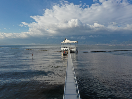 采用高效可調(diào)式渦井取藻、藍(lán)藻囊團(tuán)破壁、一體化二級強(qiáng)化氣浮等核心技術(shù),岸上站點(diǎn)藻水分離系統(tǒng)集成了藍(lán)藻打撈、脫氣沉降、氣浮分離、脫水等多個環(huán)節(jié)的技術(shù)和設(shè)備,形成了可規(guī)模化和工廠化處理藍(lán)藻的基站。適用于藍(lán)藻水華長期規(guī)律性、大范圍聚集區(qū)域的常態(tài)化應(yīng)急處置。